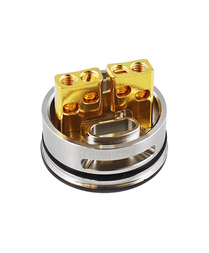 The EHPRO Panther RDA is constructed of Stainless Steel and measures 24mm in diameter. Featuring a two post block design that accommodates dual coil configurations, the Panther RDA integrates a user-friendly gold plated build deck for optimal conductivity. In addition, the Panther RDA features adjustable bottom airflow control for a dense, flavorful vape experience.