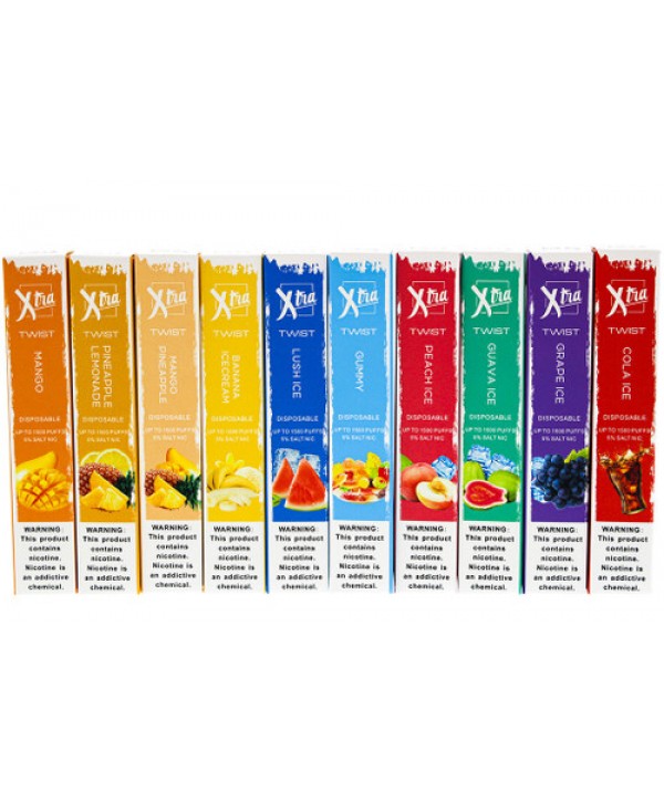 The Xtra Twist Disposable Pod is draw activated and pre-filled with 5ml of 50mg nicotine salt e-liquid, a highly concentrated salt-based nicotine that absorbs into the bloodstream at a faster rate than free-base nicotine. The faster absorption rate causes the user to experience a rush more quickly with similar satisfaction to a cigarette. Xtra Twist Disposable Pods are outstandingly smooth, flavorful and provides supremely satisfying throat hits. The Xtra Twist Disposable Pod comes fully charged and are sold individually.